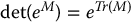 Given an n × n matrix M, we define the exponential, eM, of M using the series expansion